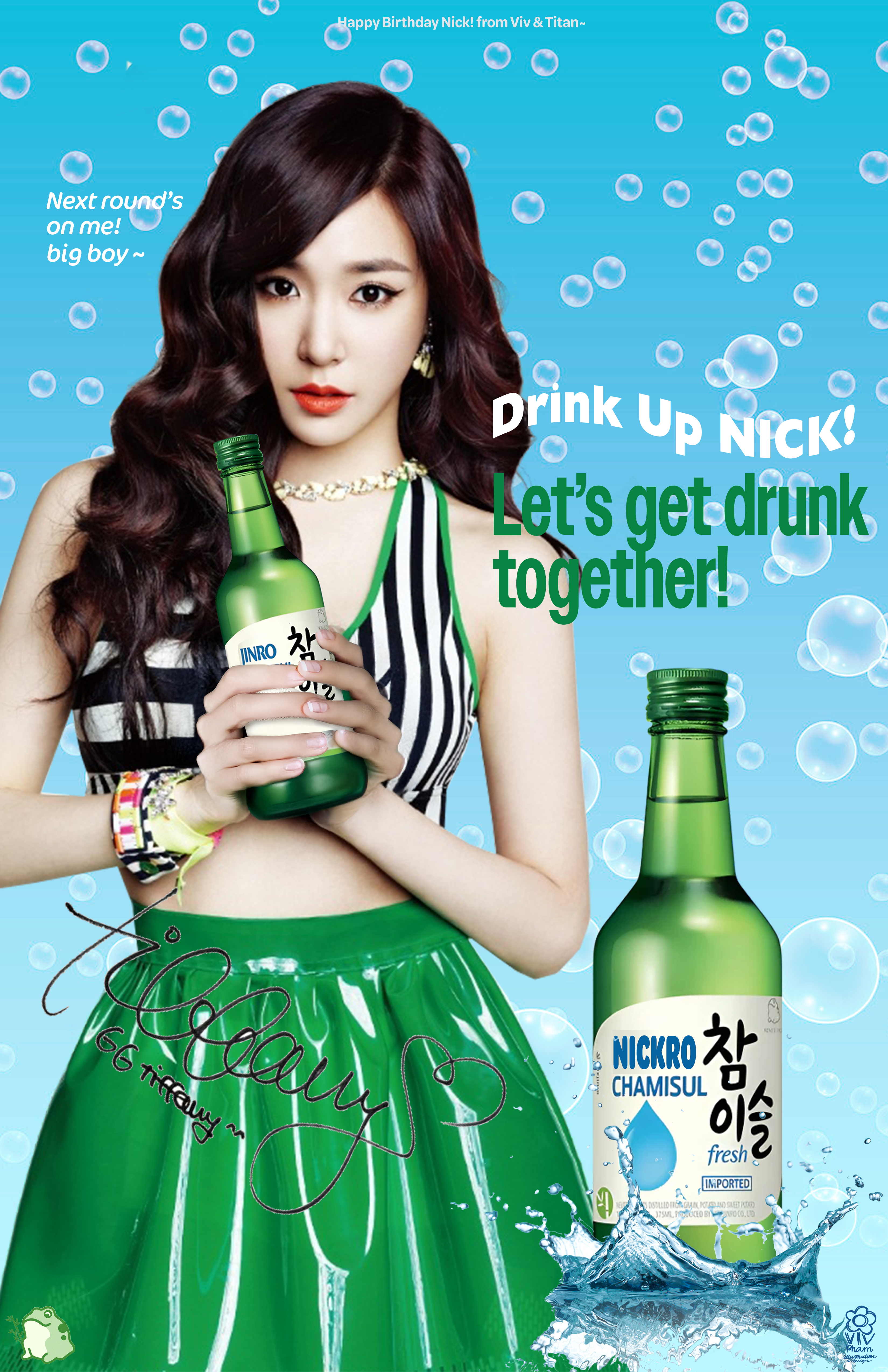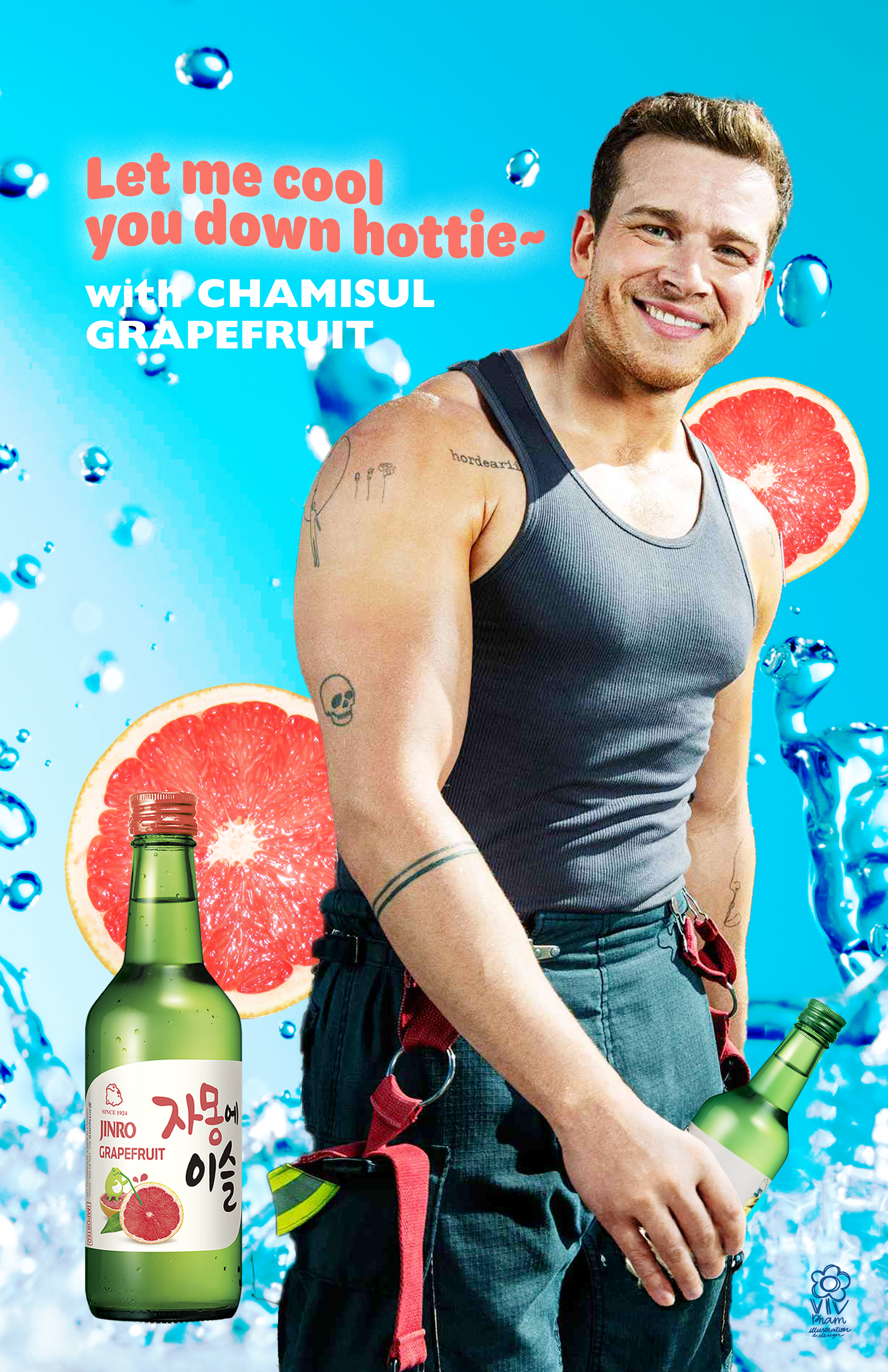 Viv made these satirical ads inspired by actual advertisement made by JINRO as gifts for her friends. These were made with no monetary purposes, purely for fun!